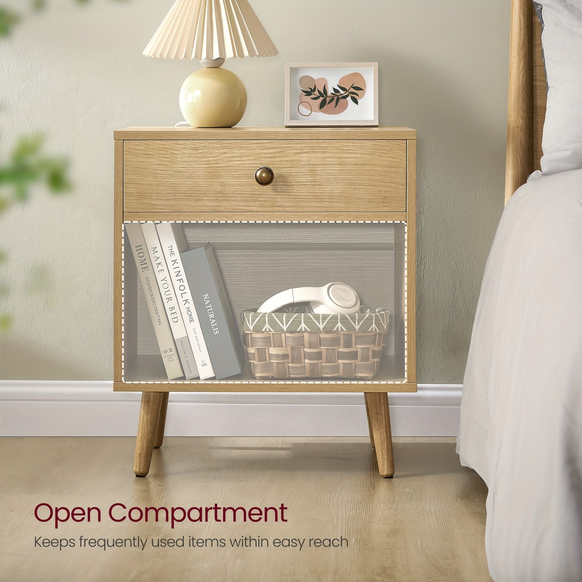 Space-Saving Nightstand with Drawer - Versatile Bedside Table with Open Compartment, Pine Wood Legs for Living Room & Bedroom Storage, Shower Caddies, Valentines Decorations Home Decor Furniture for Home and Mother's Day Decorations for Home